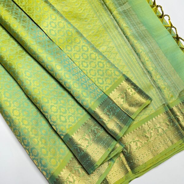 Care Instructions: To maintain the pristine quality and natural sheen of the silk, we highly recommend dry cleaning only. Store it away from direct sunlight in a dry place.
