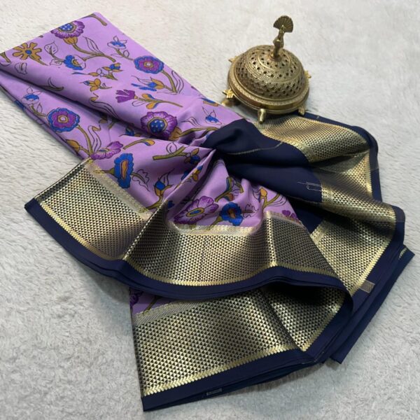 Step into a world of sophisticated style with this beautiful pure Mysore silk saree. Made for the modern woman who loves tradition, this saree combines the unmatched grace of Mysore silk with an elegant design that will surely turn heads.
